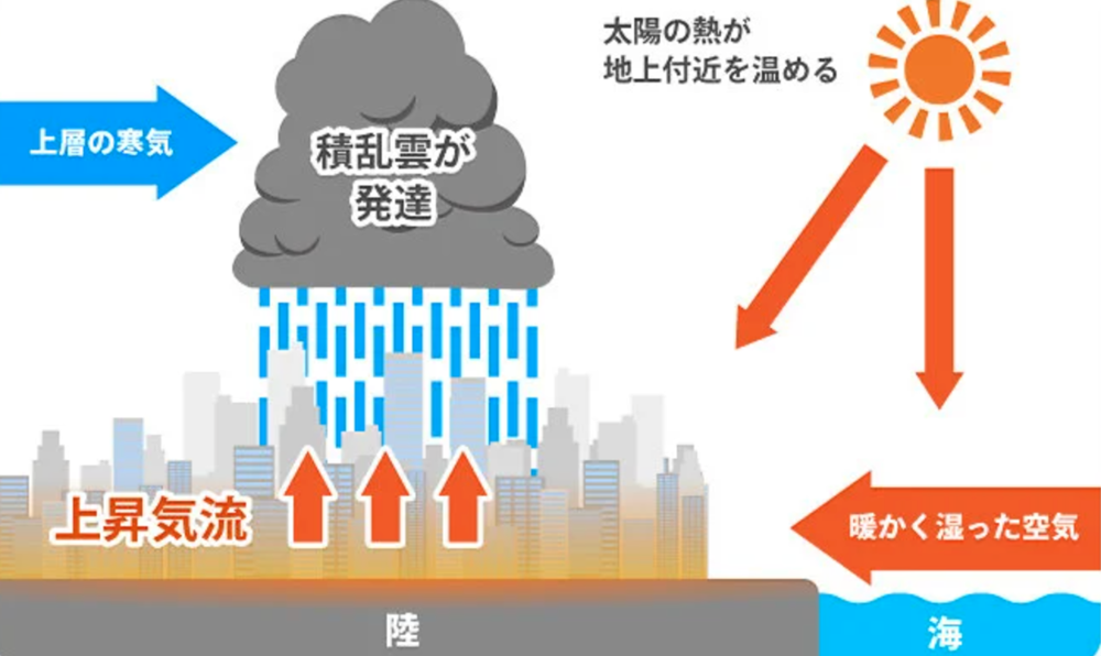 暑い日が続くほど、熱波が上空で急激に冷やされて雲になり、雨を降らせる。
