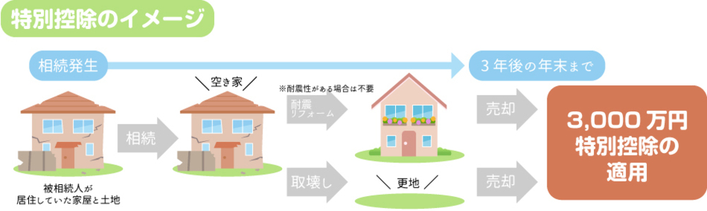 相続した土地・建物(マンション除く)を売却する場合「その土地・建物を賃貸に出した事が無い」「昭和56年以前の建物」「相続の開始があった日から3年を経過する12月31日までに売る事」等の条件を満たせば『譲渡所得(利益)から最高3,000万円まで控除する事が出来ます(相続人が3人以上だと2,000万円まで)』が適用されます。