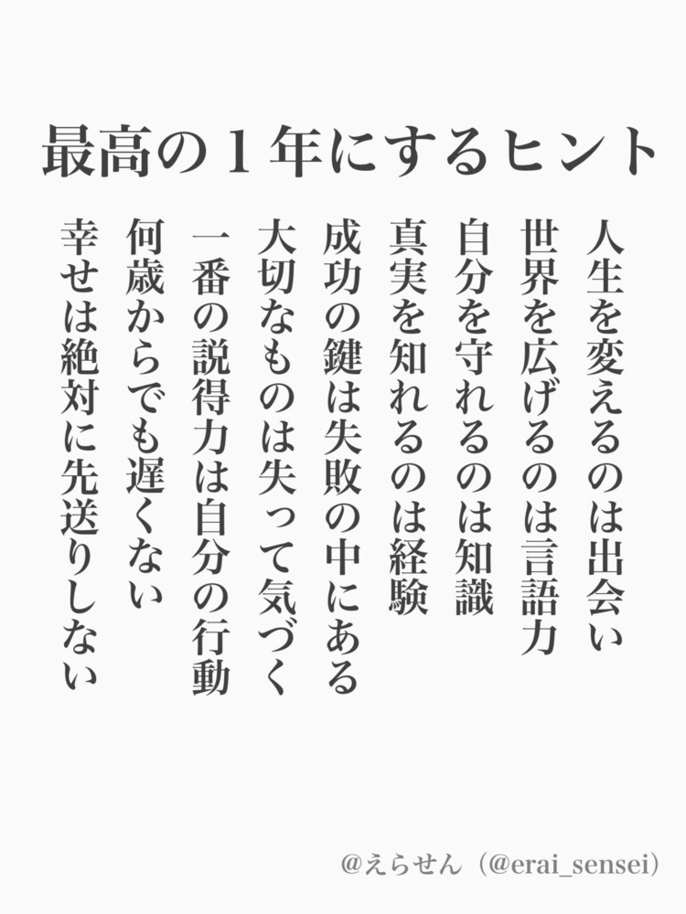 (画像には)色々書いてありますが、最高の1年にするのもしないのも「自分次第」だと思います。