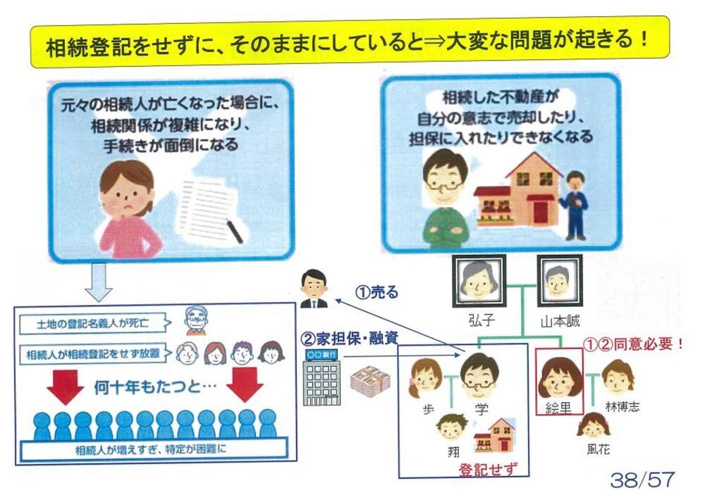 相続を知った時から3年以内に、令和6年4月以前に相続が発生していた人は令和9年3月末までに必ず相続して下さい。
